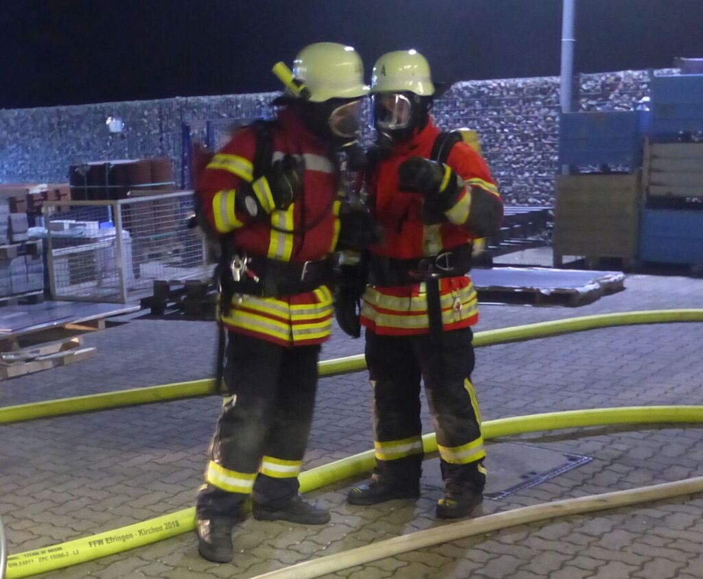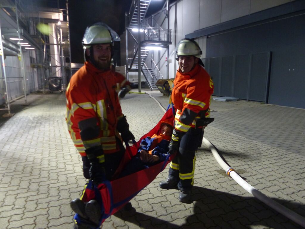 Auch in den verrauchten Räumlichkeiten unterhalb des Brandes wurde von den Atemschutztrupps nach mehreren vermissten Mitarbeitern gesucht. Davor mussten die Räume mit großen Gebläsen rauchfrei gemacht werden, bevor diese Personen gerettet werden konnten. Durch die Größe der Gebäude war es nötig, insgesamt 16 Atemschutzträger einzusetzen. Für die Löschtrupps galt es, auch die benachbarten Gebäude zu schützen, in denen sich empfindliche und teure Anlagen befinden.
