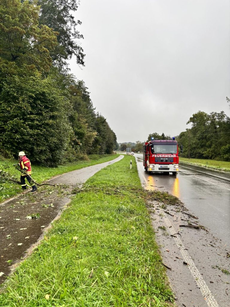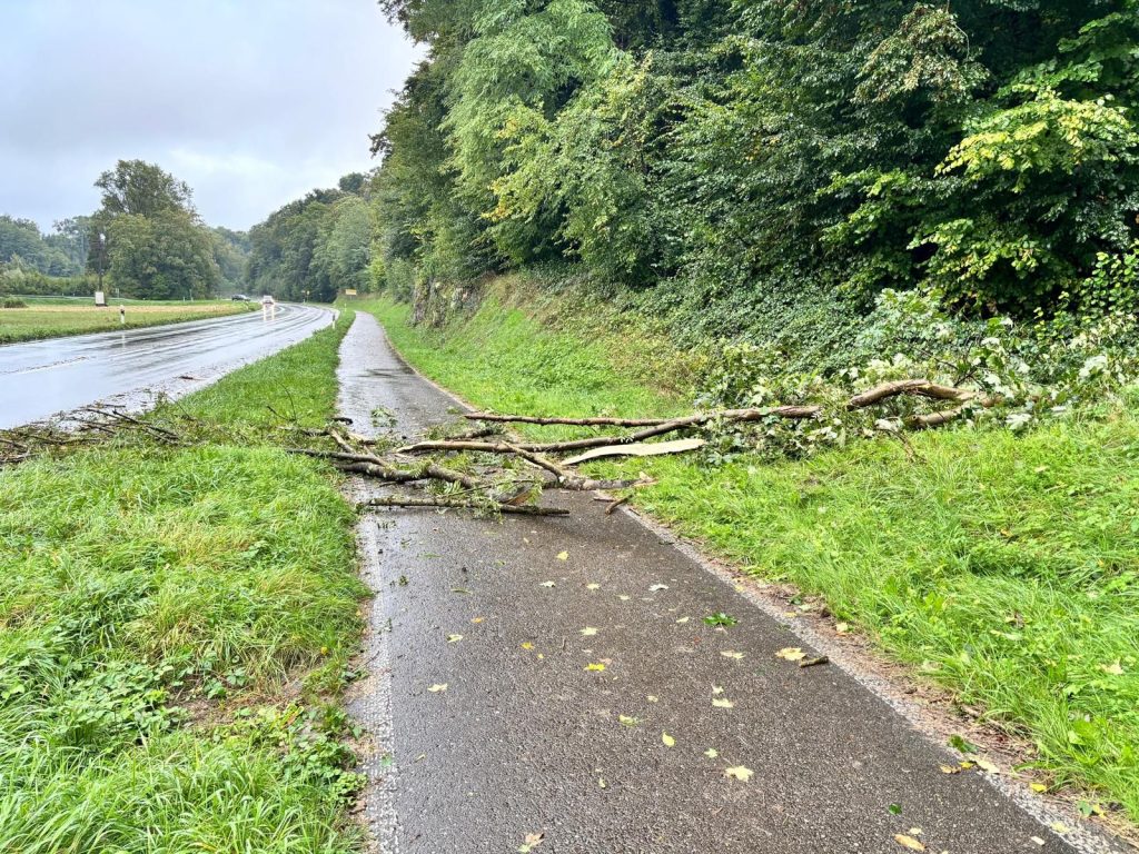 Baum auf Radweg und Straße B3